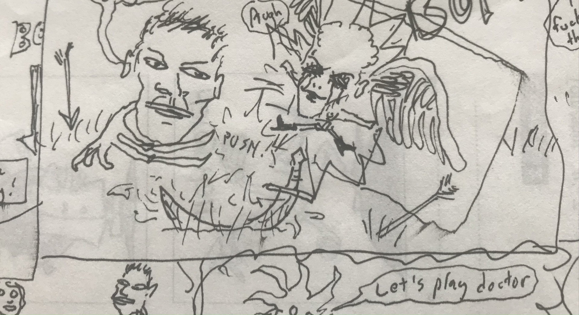I used to draw a lot of comics. There were pages and pages of the stuff. Sometimes, when I didn't feel like painting bananas or scary gods I would go looking through the comics for panels that could be colorized and hung on walls.